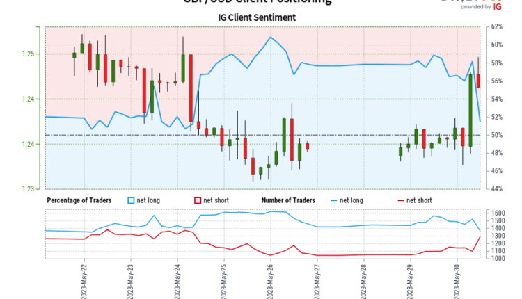 Our data shows traders are now net-short GBP/USD for the first time since May 22, 2023 14:00 GMT when GBP/USD traded near 1.24. Traders are further net-short than yesterday and last week, and the combination of current sentiment and recent changes gives us a stronger GBP/USD-bullish contrarian trading bias.