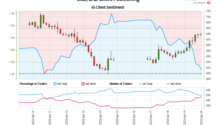 Our data shows traders are now net-short USD/CAD for the first time since Apr 10, 2023 19:00 GMT when USD/CAD traded near 1.35. Traders are further net-short than yesterday and last week, and the combination of current sentiment and recent changes gives us a stronger USD/CAD-bullish contrarian trading bias.