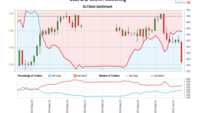 Our data shows traders are now net-long USD/CAD for the first time since May 24, 2023 08:00 GMT when USD/CAD traded near 1.36. Traders are further net-long than yesterday and last week, and the combination of current sentiment and recent changes gives us a stronger USD/CAD-bearish contrarian trading bias.