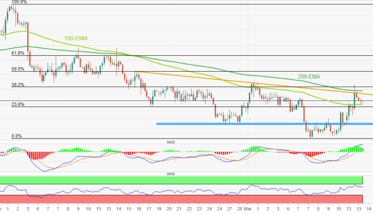 - Receding bullish bias of MACD signals, failure to cross key upside hurdles keep sellers hopeful.