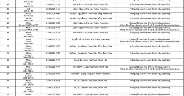 Ngày 19/10, Phòng Cảnh sát Giao thông, Công an tỉnh Thanh Hóa đã có thông báo kết quả các phương tiện vi phạm về trật tự an toàn giao thông qua hệ thống camera giám sát an ninh trật tự, an toàn giao thông.