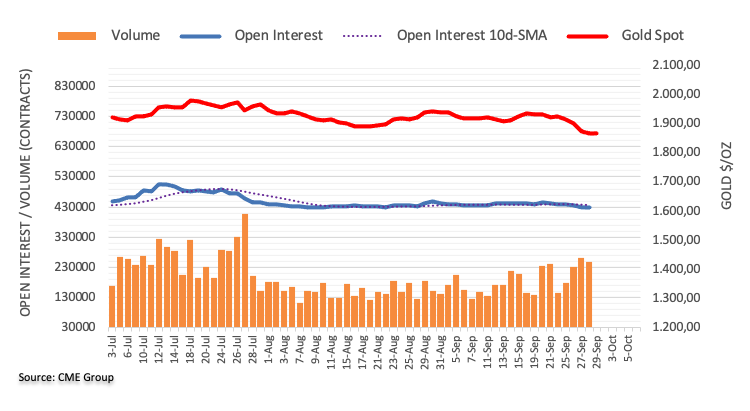Gold prices dropped for the fourth session in a row on Thursday, briefly visiting the $1860 region after staging a tepid rebound. The downtick was on the back of declining open interest and volume and leaves the door open to a potential rebound in the very near term. In the meantime, the $1860 region per troy ounce seems to hold the downside for the time being.