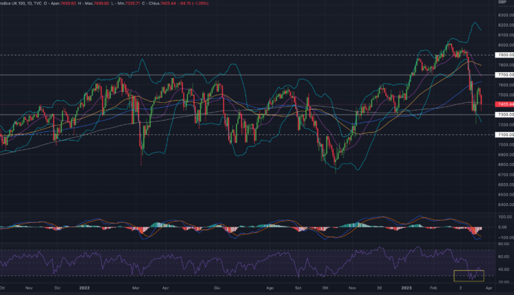 Positive week for the British index that seems to hold above current support level and 200MA. The 7,300 is an important support area that could lead to short term bounces.