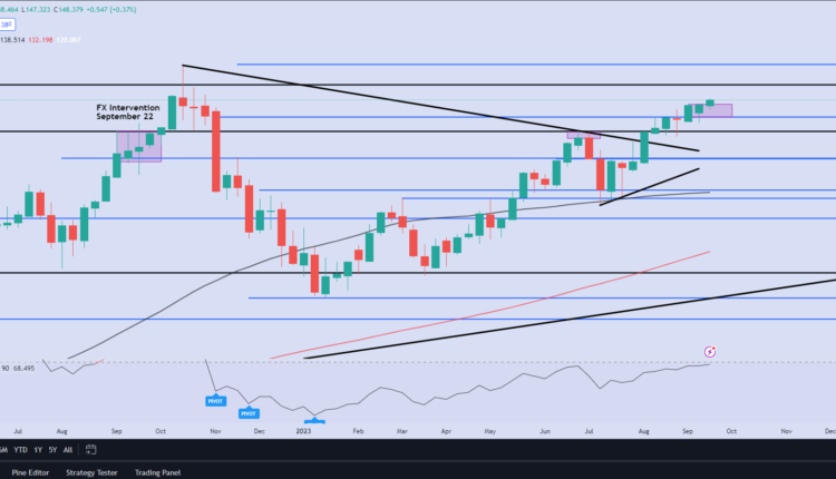 Looking at the technical picture, it is clear that we are in a strong uptrend with the 14-day RSI approaching overbought territory. I however would prefer a retest of the 150.00-152.00 mark before looking for a potential short opportunity. Waiting for an announcement around FX Intervention may also pay dividend as we have mentioned above that last year saw a spike higher following intervention before the selloff in USDJPY began a few days later.
