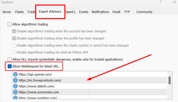 Please activate “Allow WebRequest for listed URL” and add following URLs: