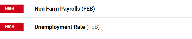 - February nonfarm payrolls are forecast to clock in at 205,000, following January's 517,000 increase