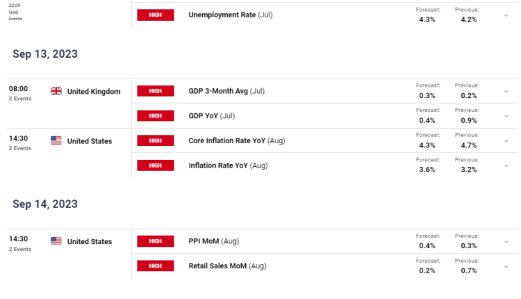Source: DailyFX Economic Calendar