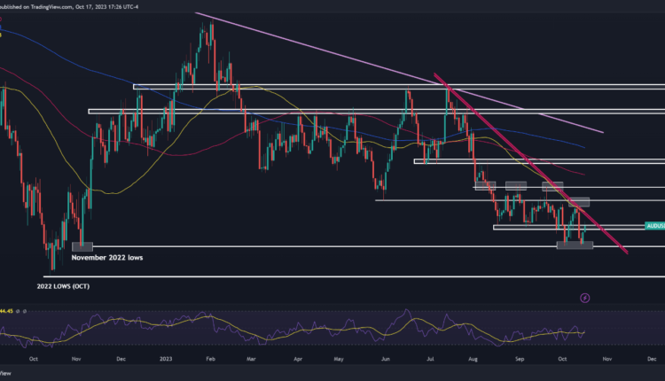 In the realm of fundamentals, the surge in U.S. Treasury yields, fueled by the remarkable resilience of the U.S. economy, and the Fed’s determination to keep interest rates high for an extended period of time in pursuit of price stability create a difficult and rather hostile environment for the Aussie.