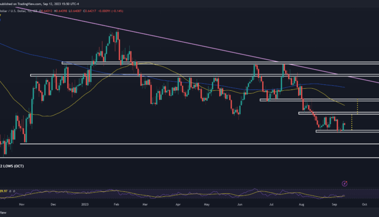The Australian dollar was muted on Tuesday, unable to consolidate Monday's gains in a trading session marked by risk aversion and moderate U.S. dollar strength. Despite Tuesday’s subdued performance, AUD/USD seems to be in the process of forging a double bottom, which normally tends to presage the exhaustion of selling pressure prior to a rebound.