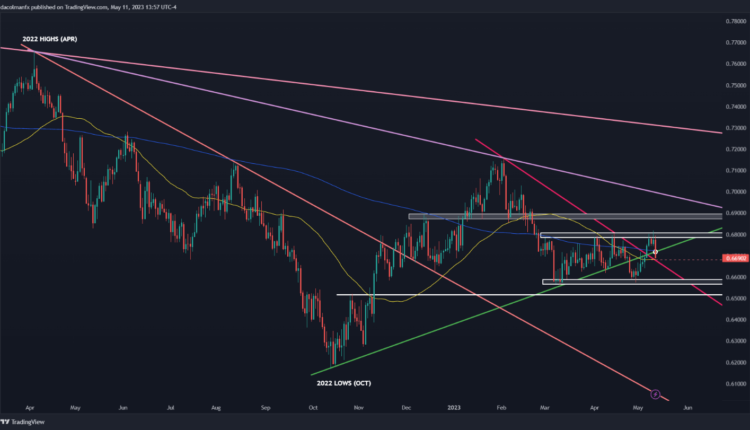 Confirmation that the bears have become the dominant force could come from a clear and clean breach of support at 0.6680. A sustained drop below this floor could pave the way for a deeper pullback, with the 2023 lows as the next possible area of interest for speculators.