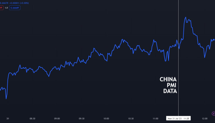The Australian Dollar initially jumped after Chinese manufacturing PMI beat forecasts before settling back to near where it started.