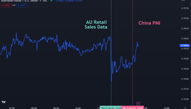 AUD/USD SHORT TERM CHART OVER THE DATA RELEASES