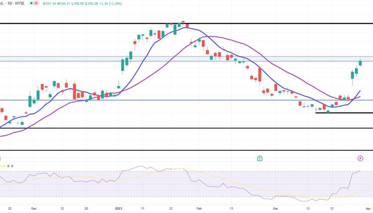 BABA stock has made it up to the supply region between $103 and $105.32, where bulls have begun to see resistance set in. It is likely that quite a few traders will choose to take profit there as well. That range comes from profit-taking seen back in August 2022.