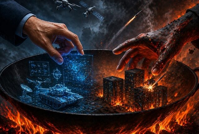Hình ảnh “hai bàn tay trong chảo lửa” phản ánh trạng thái hai chiều này. Một bàn tay can thiệp vào cuộc chiến thông qua các công nghệ tối tân, trong khi một bàn tay khác bị kéo vào vùng rủi ro khi các cơ sở hạ tầng công nghệ trở thành mục tiêu tấn công.