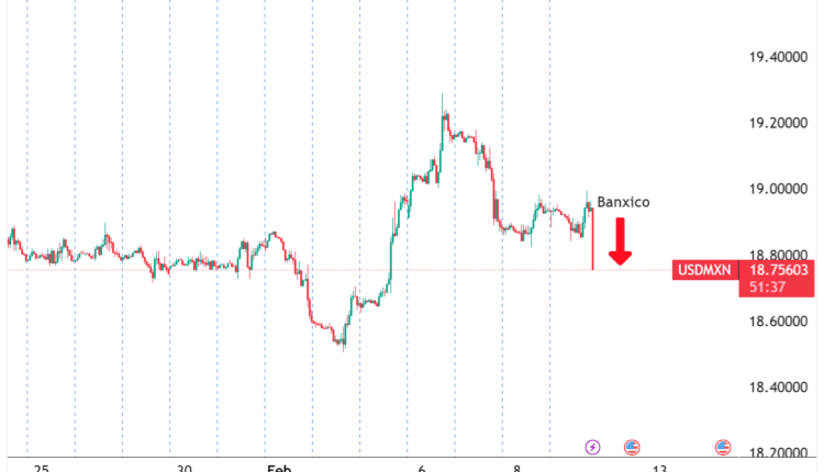 USD/MXN is falling like a stone from the 18.94s to a low of 18.7574 so far: