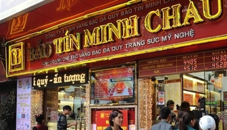 Một cửa hàng Bảo Tín Minh Châu trên phố Trần Nhân Tông, Hà Nội. (Ảnh: Minh Đức).