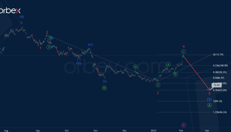 In the near future, we can expect the market to continue devaluing in the final intermediate wave (5) of the leading diagonal to 72.04. At that level, minor wave 5 will be at 76.4% of impulse 3.