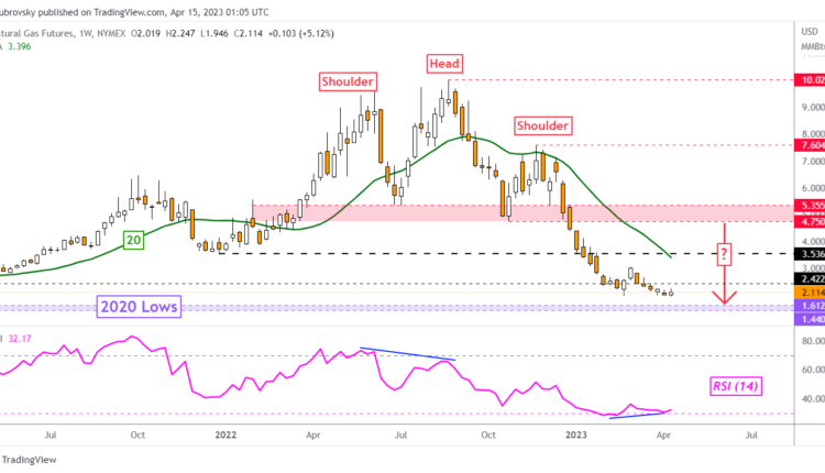 Natural gas prices were once again left little changed this past week as the heating commodity struggled to find any momentum to either clear through critical support or push past resistance. Looking at the Average True Range (ATR), the past 14-day period has been some of the quietest since August 2021. Overall, prices are struggling to find follow-through in the context of what has been a bearish play of a Head & Shoulders breakout since the end of last year. Positive RSI divergence continues growing, indicating a rising risk of a reversal.