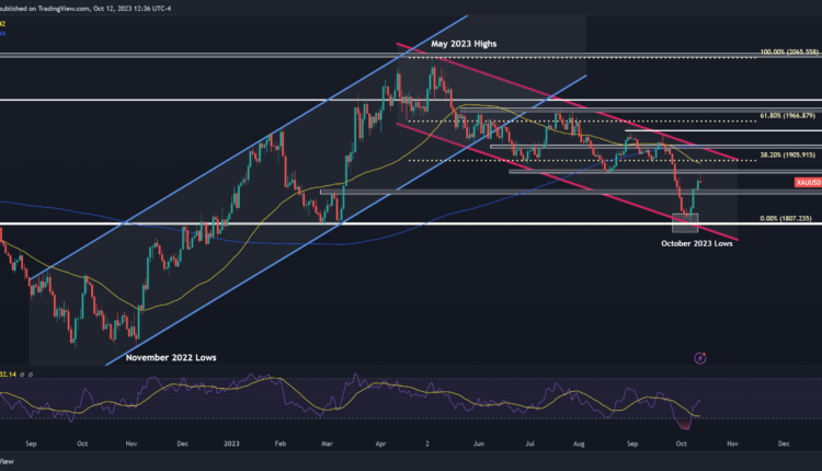Gold prices (XAU/USD), which hit multi-month lows last week, embarked on a modest recovery in recent days. Earlier on Thursday, bullion rose to its highest point since September 27 ($1,885). However, this upward momentum was abruptly halted by the release of U.S. inflation data, which exceeded forecasts. For context, September's headline CPI increased by 0.4% month-over-month and 3.7% year-over-year, surpassing estimates by a tenth of a percent in both cases.