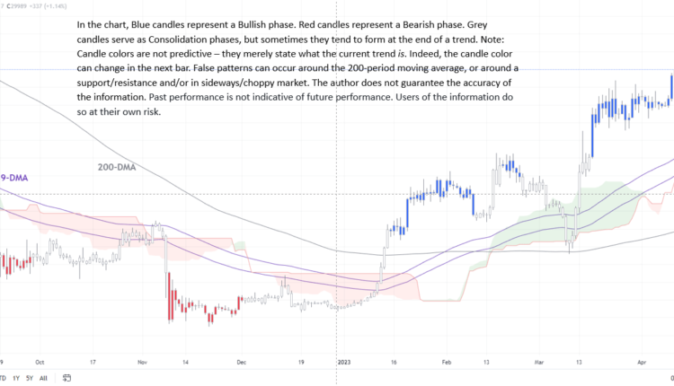 BTC/USD rose in Q1-2023 above the 200-day moving average, the 89-day moving average, and the lower edge of the Ichimoku cloud on the daily charts. The downward correction in March truncated at the 200-day moving average, further reinforcing the nascent uptrend.