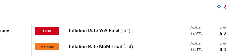 German inflation met expectations, rising 6.2% year-on-year as forecasted, with a month-on-month rise of 0.3%. The data comes after the EU experienced a second successive month where core inflation printed at 5.5% and headline inflation eased from 5.5% to 5.3%.