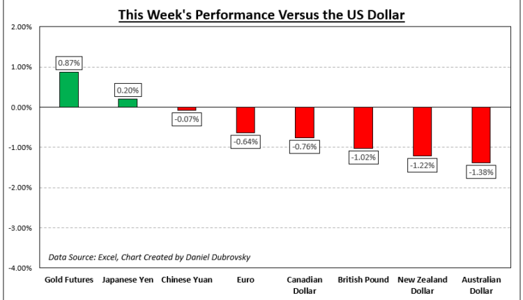 Gold prices, while gaining after the jobs report, still finished the week lower amid a surge in longer-term Treasury yields. The British Pound remained pressured despite a rate hike from the Bank of England. Meanwhile, a deterioration in market sentiment meant that the pro-risk Australian and New Zealand Dollars underperformed.