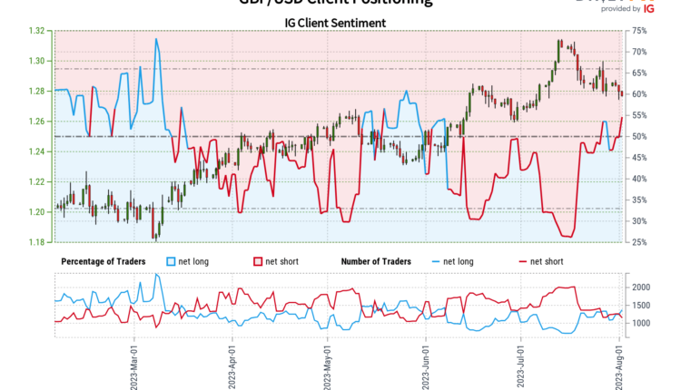 The British Pound has been under pressure from the US Dollar since the middle of July, with Sterling now around its lowest in a month. In response retail traders have been increasing GBP/USD net-long exposure. This can be seen by looking at IG Client Sentiment (IGCS). IGCS tends to function as a contrarian indicator. With that in mind, could further losses be ins tore for the British Pound?