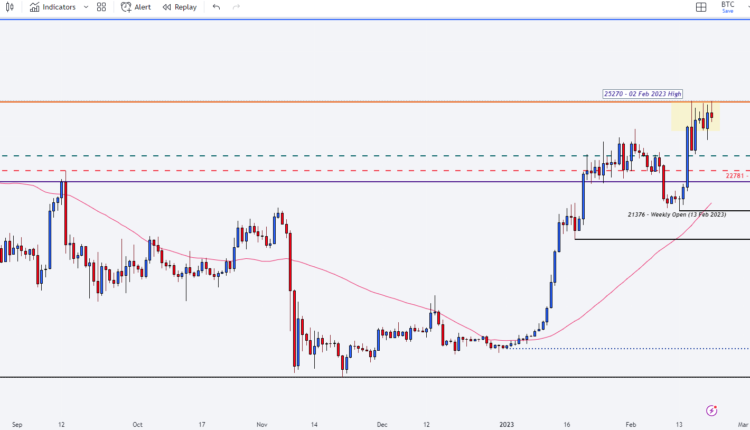 Bitcoin prices have surged over 50% since the start of the year and approximately 6.5% this month. With a 39.93% rally in January allowing BTC to breach $20,000, the speculative asset has continued to climb, rising to another big level of psychological resistance at $25,000.