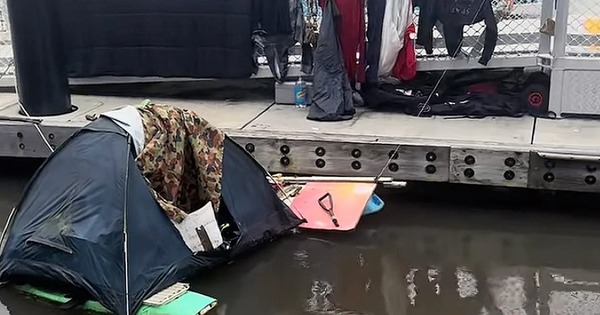Mới đây, một đoạn video gây sốc được đăng tải trên mạng xã hội đã ghi lại cảnh một người dựng lều trên sông Nerang ở Surfers Paradise (Gold Coast, Queensland). Chiếc lều được treo bằng dây thừng và cố định bằng hai ván chèo, nổi lênh đênh trên mặt nước.