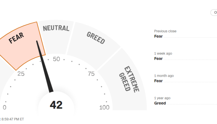 Looking at market sentiment via the CNN fear and greed index there has been a move towards neutral but as it stands the indicator still holds on to the ‘fear’ tag.
