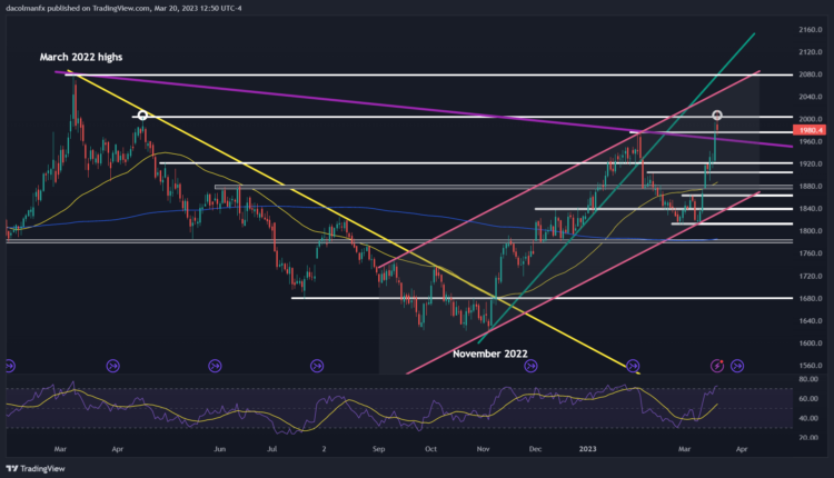With sentiment on the mend, defensive assets could lose some of their appeal, preventing gold prices from extending their recent advance. However, if the banking system upheaval were to increase again, XAU/USD could pick up strong bullish momentum in the blink of an eye to power higher and challenge its 2022 highs just a touch below $2,080.