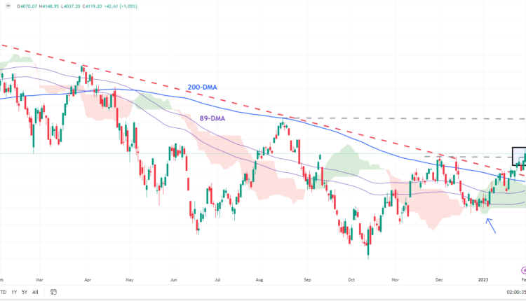 The S&P 500 closed on Thursday above crucial resistance at the early-December high of 4100, reasserting the bullish bias. This follows a rise above another vital barrier on the 200-day moving average and a rebound from quite a strong cushion around the Ichimoku cloud support on the daily chart.