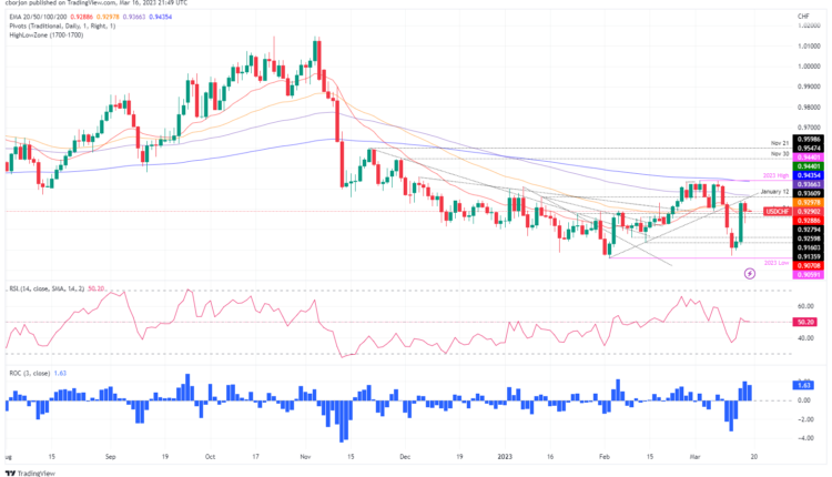- USD/CHF hovers slightly below the 0.9300 figure and remains around the 20-day EMA.