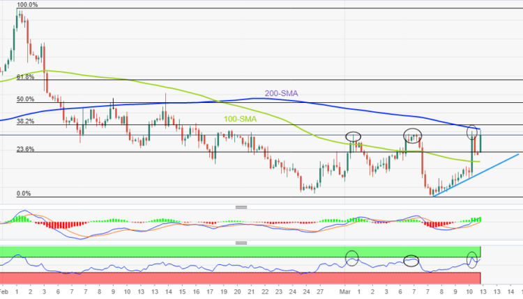 - Hidden bearish RSI divergence teases another pullback from 200-SMA but 100-SMA defends bulls.