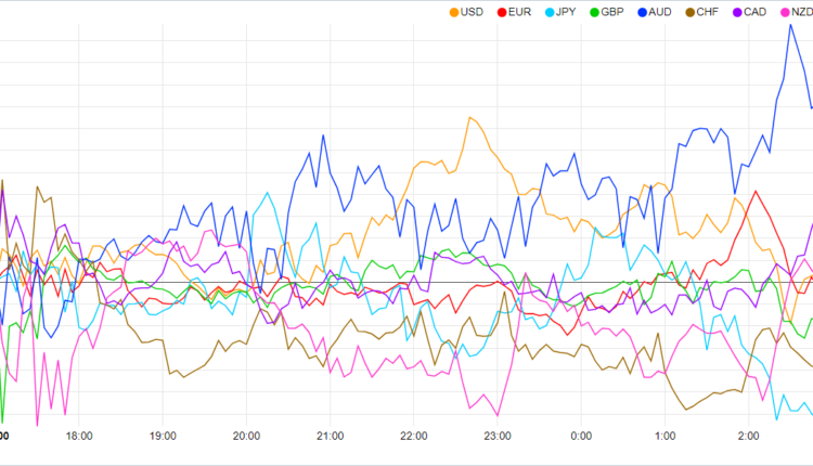 Currency Strength Chart: Strongest – AUD, Weakest – JPY.
