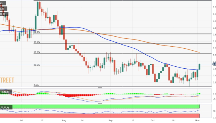 From a technical perspective, the AUD/USD pair has now found acceptance above the 50-day Simple Moving Average (SMA) for the first time since July. This, along with a move beyond the 23.6% Fibonacci retracement level of the July-October decline, could be seen as a fresh trigger for bullish traders. Moreover, oscillators on the daily chart have just started moving into positive territory and validate the constructive setup.