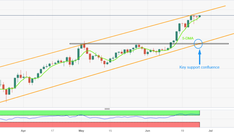 Hence, the bullish trend channel and hawkish comments from ECB policymaker Matin Kazaks join the broad Euro run-up to favor the pair buyers. However, the overbought RSI (14) line challenges the quote’s further upside as it prods the stated channel’s top line, close to 157.50 by the press time.