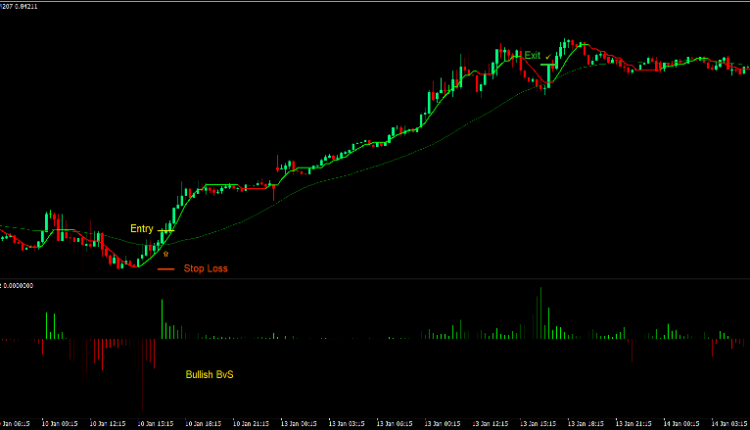 Then, the BvS histogram bars should indicate that the direction of the market sentiment is in line with the direction of the trend reversal. This is based on whether the bars are positive or negative, as well as the color of the bars.