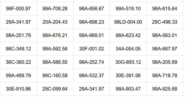 Cụ thể, danh sách gồm các xe ô tô mang biển số sau đây: 30F-001.02; 34A-054.05; 98A-667.97; 99A-204.88; 36C-360.22; 98A-586.55; 98A-252.74; 30G-893.12; 98A-205.69; 98A-220.60; 99A-469.79; 99C-160.58; 98A-532.37; 30E-391.56; 98A-718.78; 99A-154.17; 30E-910.86;