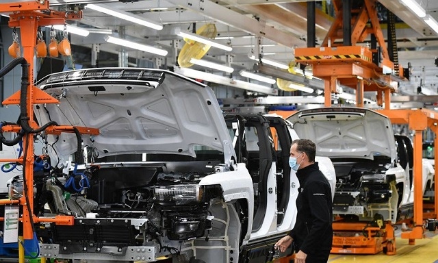 ![]() Dây chuyền sản xuất ô tô tại nhà máy của General Motors ở Detroit, Michigan (Mỹ). (Ảnh: AFP/TTXVN)