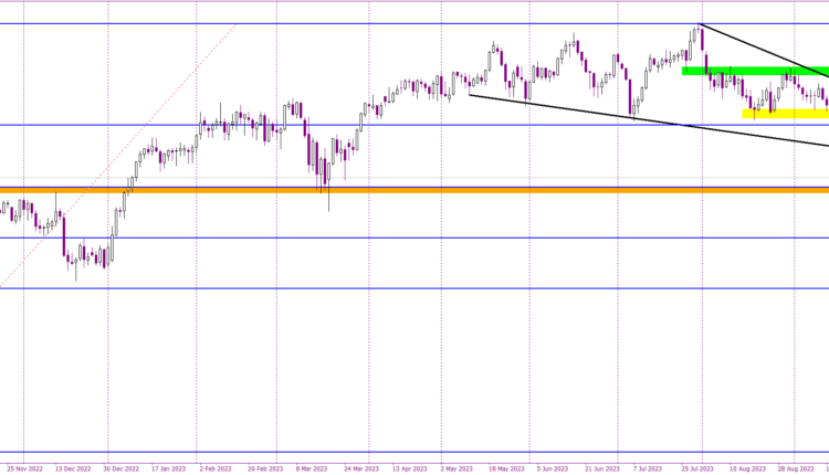 Yesterday's trading session provided a glimpse into the potential of this support. The bears, in a bid to push the index further south, were thwarted in their endeavors, leading to a bounce off this crucial level. The end result? A doji candle, one that traditionally signals indecision but offers a glimmer of hope for those bullish on DAX. But to truly understand the current scenario, one must zoom out and analyze the broader landscape. Until recently, the downward movement was comfortably nestled within a wedge pattern, demarcated by black lines. However, the past week witnessed a breach, with prices slicing through the lower boundary of this pattern. This shift is a glaring testament to the mounting bearish pressure, and it's clear that the bulls are in a tight spot.