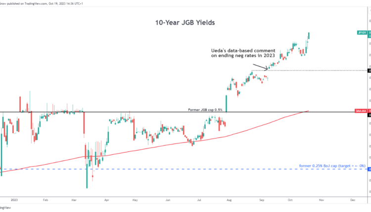 The 10-year Japanese government bond yield rose sharply on Thursday ahead of Friday’s inflation print. Yields have been rising as the Bank of Japan prepares to withdraw from its negative interest rate regime as wages and price pressures rise.
