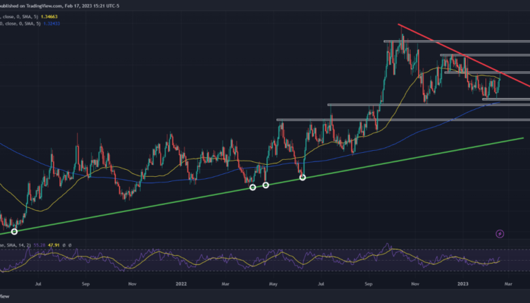 According to consensus estimates, Canadian January CPI rose 0.7% month-over-month, bringing the annual rate to 6.1% from 6.3% previously, a small but welcome directional improvement. An inline or below-forecast readout should be bearish for the Loonie, but an upside surprise would add some support insofar as the result could lead investors to discount further BoC hikes.