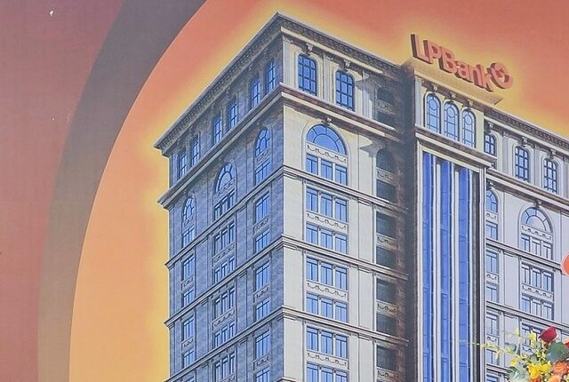 Theo đó, tại lễ cất nóc dự án vào cuối tháng 9 vừa qua, logo Ngân hàng TMCP Bưu điện Việt Nam (LPBank, HOSE: LPB) đã xuất hiện trên nóc toà nhà tại ảnh phông nền của lễ cất nóc.