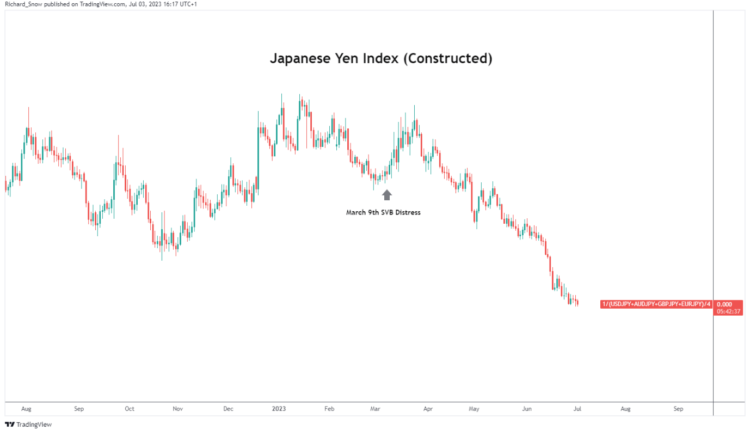 Constructed Japanese Yen Index (USDJPY, AUDJPY, GBPJPY, EURJPY)