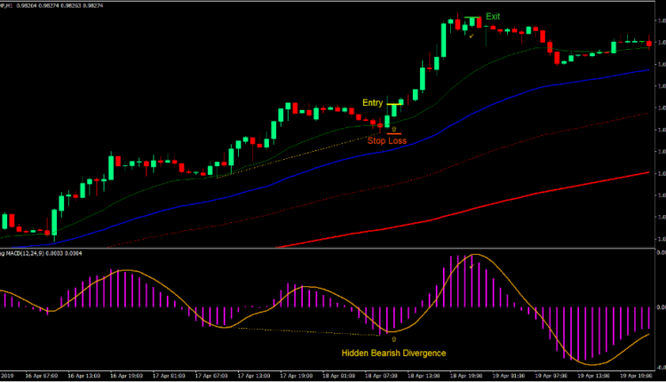 - A bearish hidden divergence should be observed on the Zero Lag MACD.