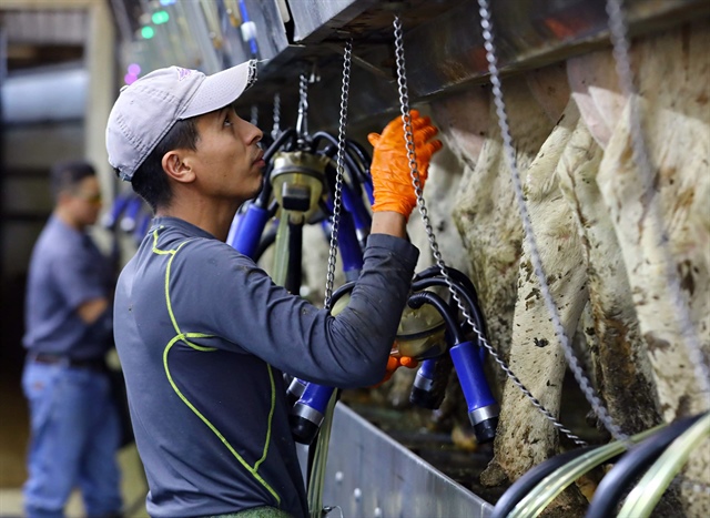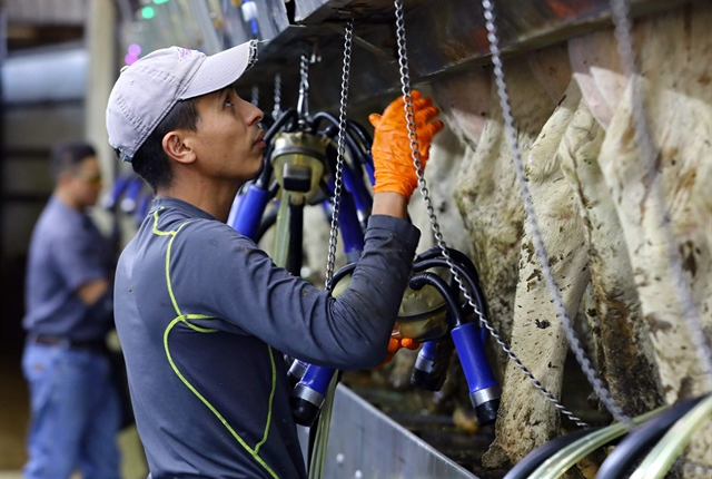 Lao động làm việc ở một trang trại bò sữa ở bang Wisconsin. Mỹ. Ảnh: Wisconsin Center for Investigative Journalism
