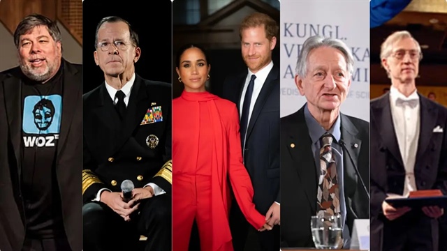 ![]() Steve Wozniak (đồng sáng lập Apple), Đô đốc Mike Mullen (cựu Chủ tịch Hội đồng Tham mưu trưởng Liên quân Mỹ), Hoàng tử Harry và Meghan Markle (thành viên hoàng gia Anh), Geoffrey Hinton (giành giải Nobel, được mệnh danh là “cha đẻ AI”)