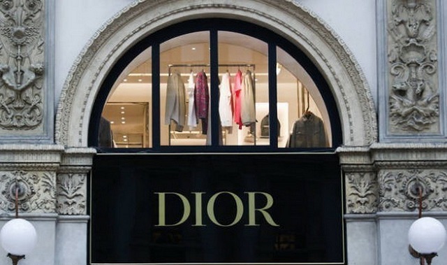Biểu tượng hãng thời trang Dior tại cửa hàng ở Milan, Italy. (Ảnh: Getty Images/TTXVN)