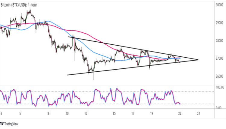 Bears needed a break from the slide, though, leading BTC/USD to form higher lows and lower highs inside a symmetrical triangle pattern.